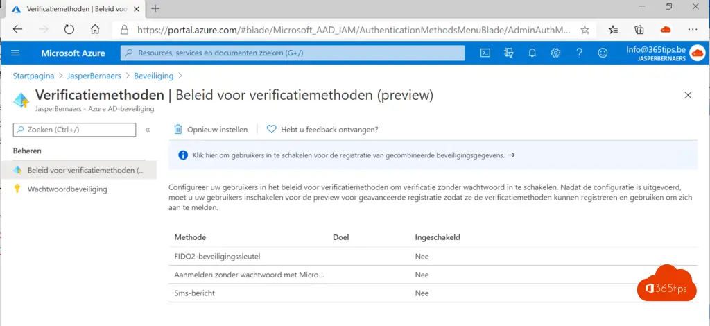 1. Activatie van Passwordless in Azure Active Directory