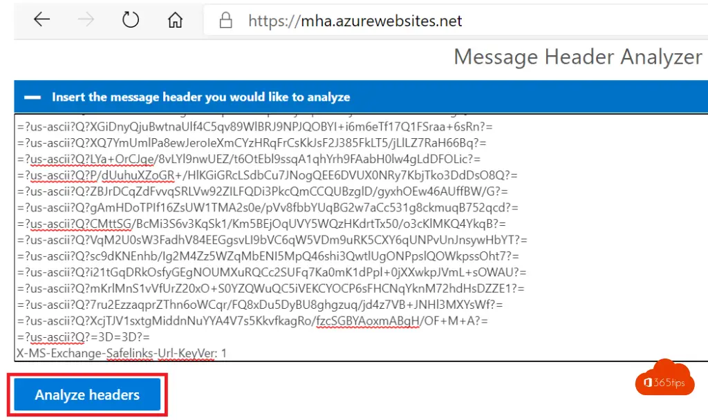 Microsoft heeft de Message Header Analyzer tool ontwikkeld die je kan gebruiken om een e-mail bericht te analyseren. In deze tool kopieër je de e-mail headers die vervolgens duidelijk leesbaar aangeboden worden in een grafische voorstelling.