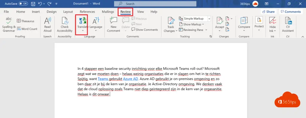 Microsoft Office 365 abonnees hebben toegang tot Word Translator, een intelligente service die wordt aangeboden via de Microsoft Cloud. Met behulp van Word Translator kunnen ze Word-documenten gratis en in realtime vertalen in alle ondersteunde talen. Dit is een handige manier om documenten te vertalen als je samenwerkt met mensen die een andere taal spreken of als je documenten wilt delen met mensen in andere landen.