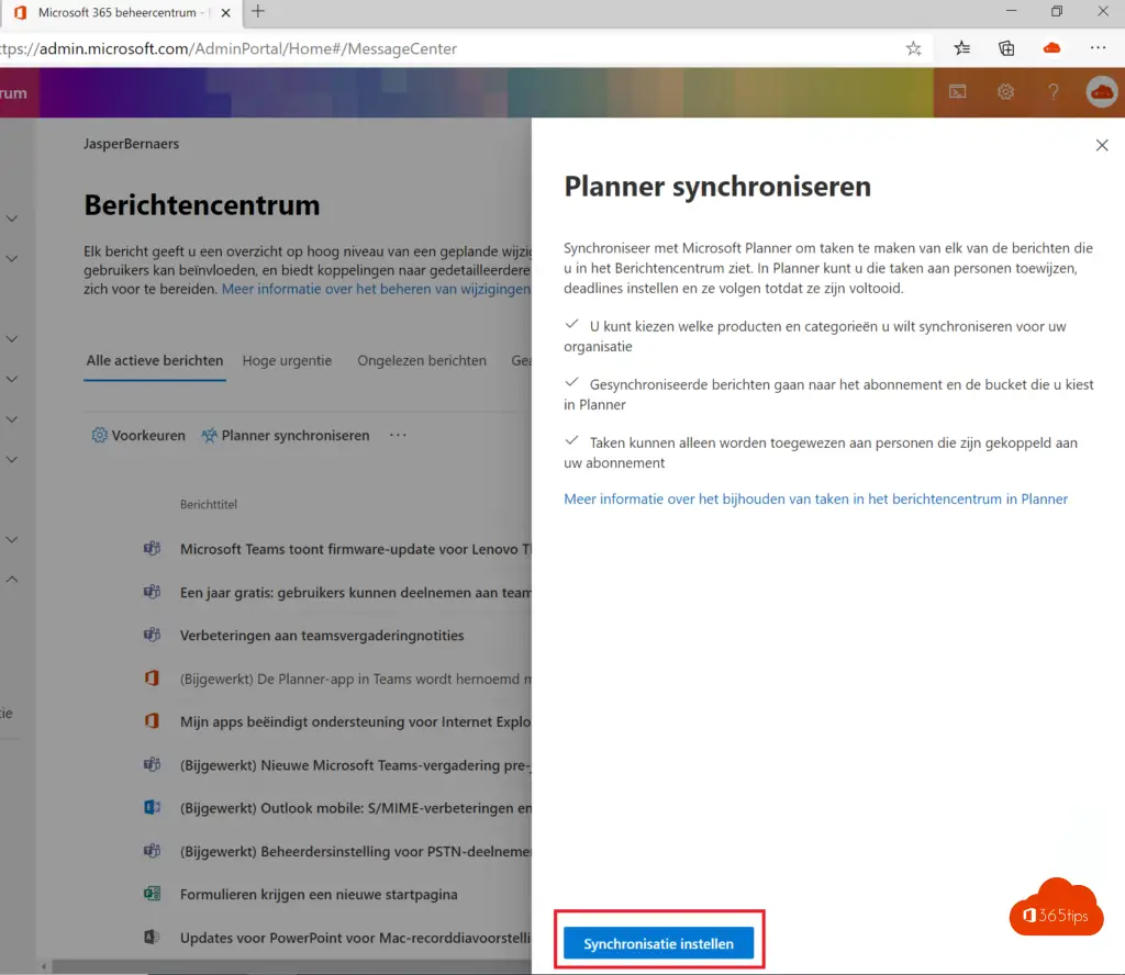 Surf naar het administrator paneel van Microsoft 365: https://admin.microsoft.com/AdminPortal/Home#/MessageCenter