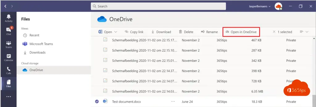 Persoonlijke bestanden plaats je vaak op je eigen OneDrive voor bedrijven. Deze kan je via Microsoft Teams openen en via het web.