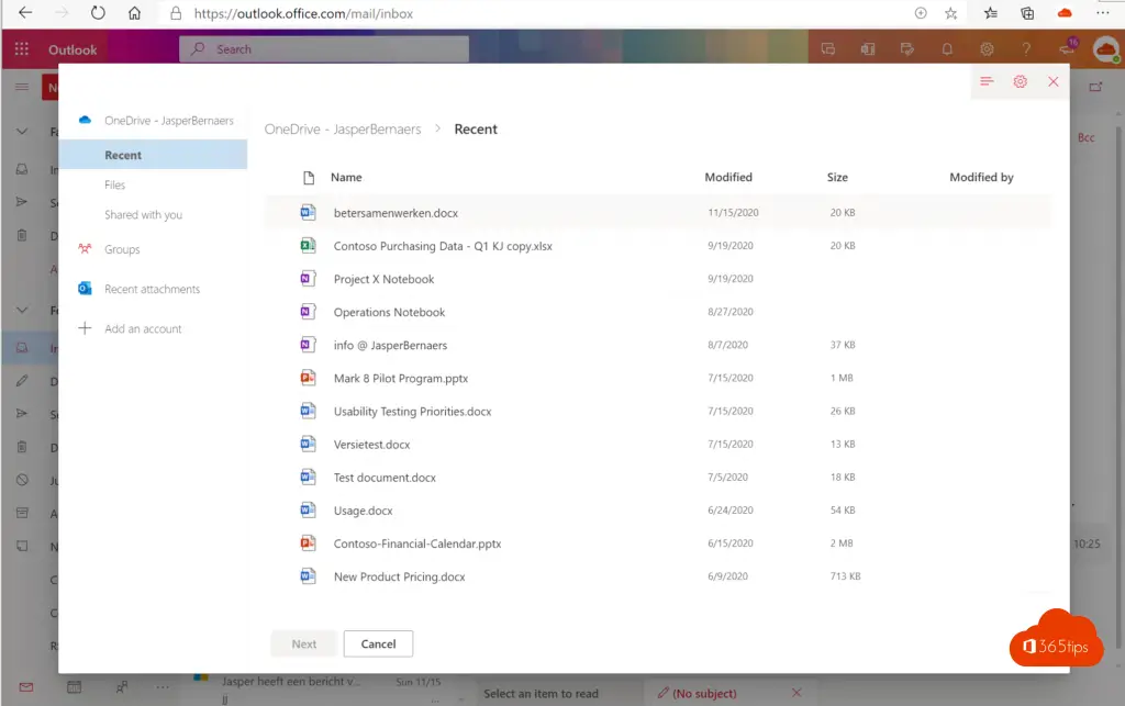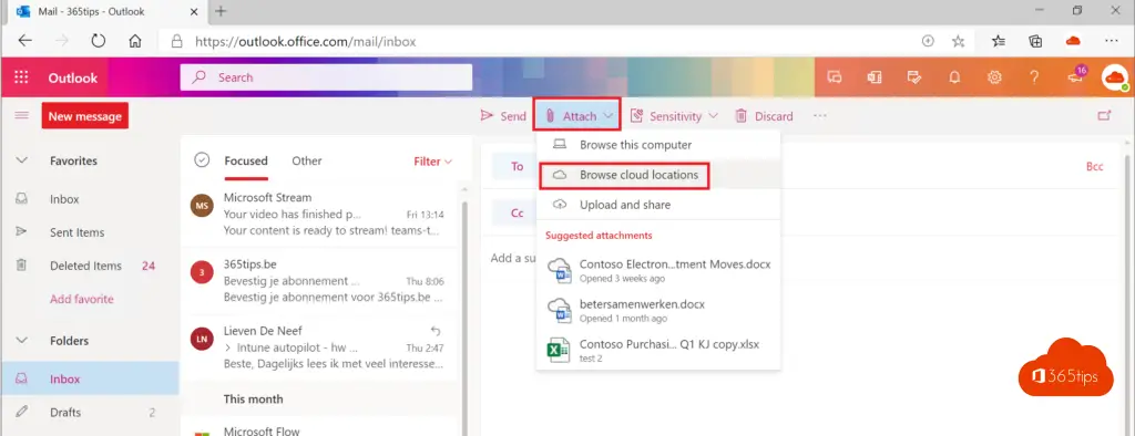 5. Bijlage per email verzenden in Office 365