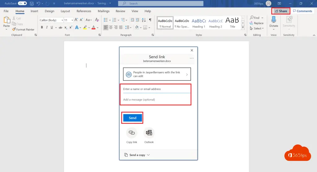 6. Via Microsoft Word, Excel, PowerPoint rechtstreeks een bestand delen