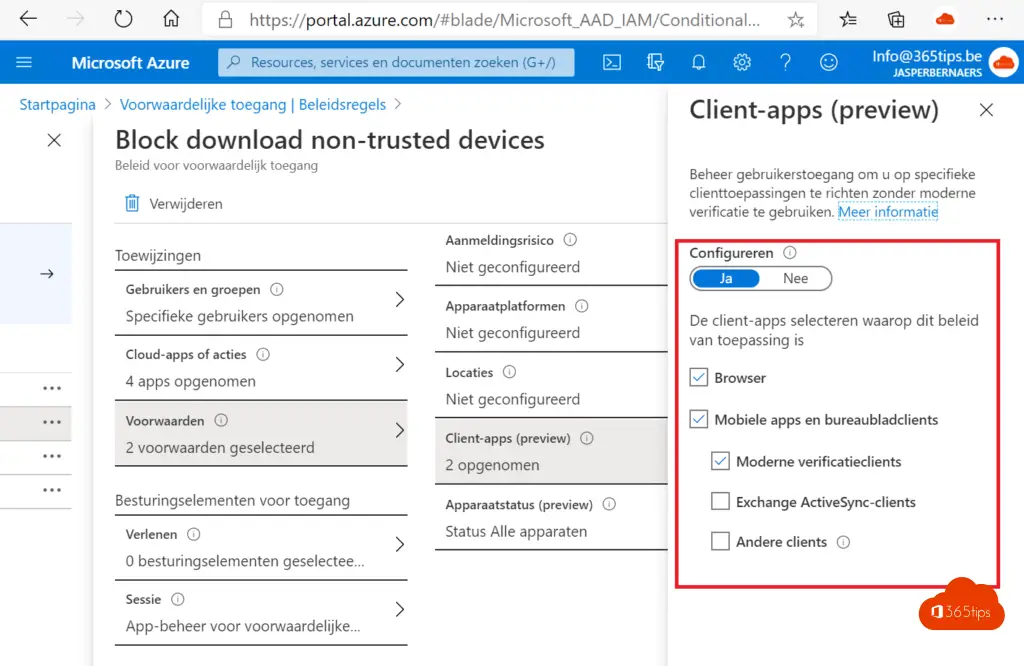 Eerder schreef ik al een blogpost om het downloaden van O365 bestanden bij een onbekend toestel te blokkeren. Dit deden we met de preview optie binnen voorwaardelijke toegang van Azure AD. In SharePoint of OneDrive for business bestaat deze mogelijkheid ook. In deze blog gaan we even door de opties en door de verschillen. Lees ook zeker de Azure AD security standaarden en in 15 stappen naar een digitale werkplaats met Microsoft 365 E3 of E5.