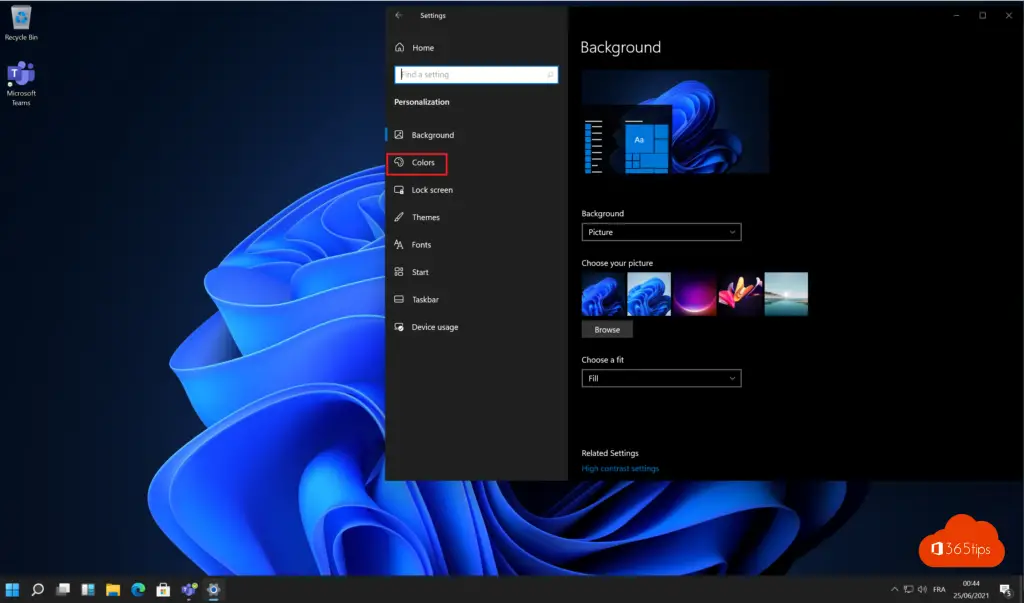 1. Selecteer bij instellingen: personalisering om donkere modus te activeren