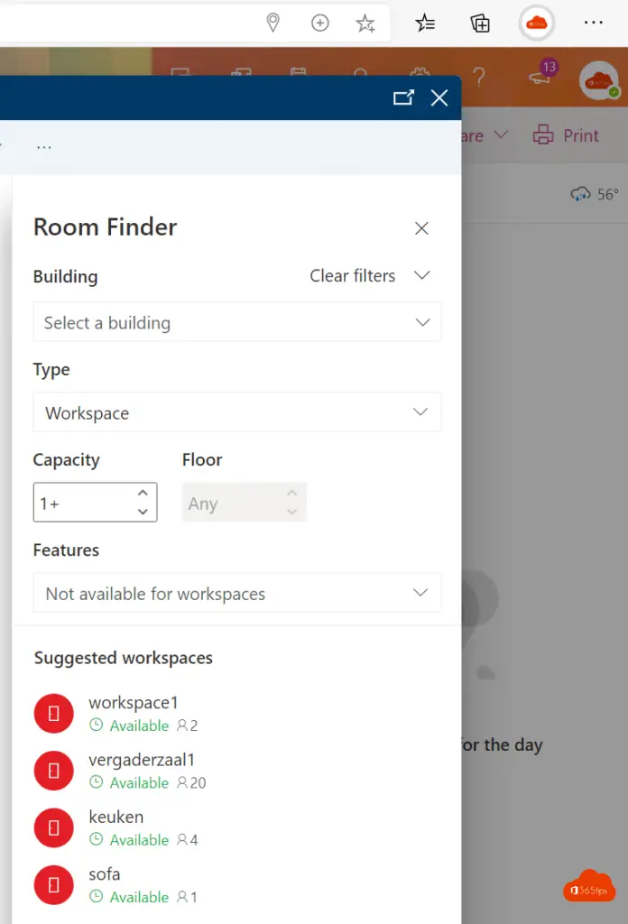 Het is sinds enkele dagen mogelijk om een kantoor te boeken op een fysieke plaats via de nieuwe mogelijkheden van Microsoft workspaces.