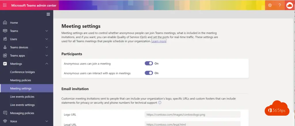 - Navigeer naar: https://admin.teams.microsoft.com/meetings/settings