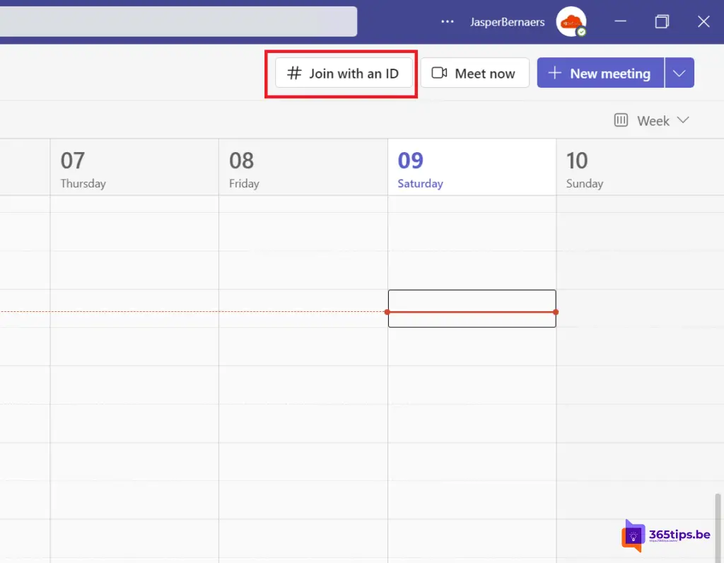 Druk bij kalender in Teams op “Join with an ID” om deel te nemen aan de vergadering.