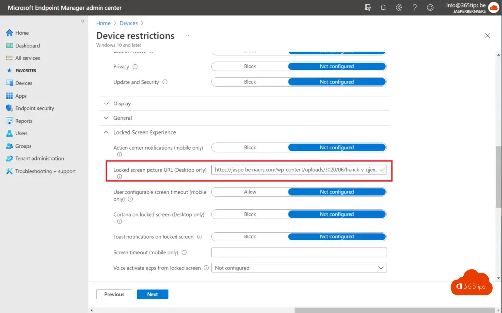 Achtergrond en vergendelingsscherm instellen in Microsoft Endpoint manager