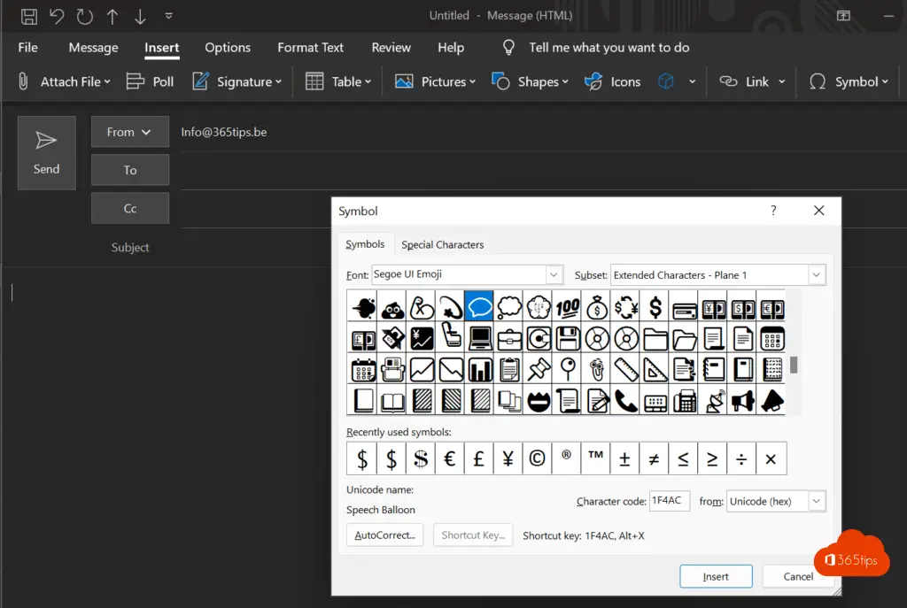 Gebruik de Outlook Emoji-snelkoppeling om Emoji’s in Outlook te kunnen verzenden.