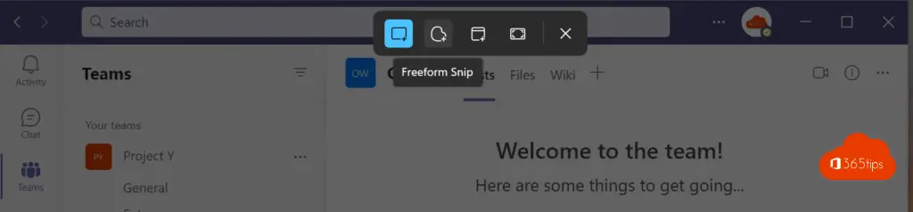 In deze vrij vorm kan je delen van het scherm met de muis cursor selecteren zodat je een schermopname in één beweging kan invoegen in Word, PowerPoint of andere toepassingen.
