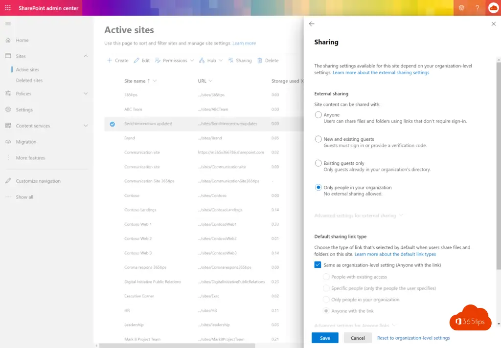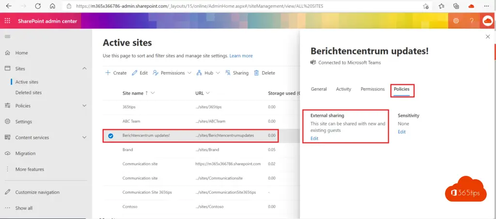 Als je gasttoegang hebt ingeschakeld maar je wenst niet dat er gasten welkom zijn in enkele teams kan je dit uitschakelen via het SharePoint paneel.