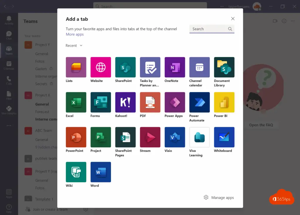 5. Voeg tabbladen toe om alle applicaties in één paneel te centraliseren in Teams