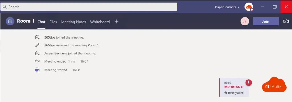 Als je de meetingrooms openstelt is het praktisch dat je een aankondiging doet zodat deelnemers weten dat de ruimtes open gaan.