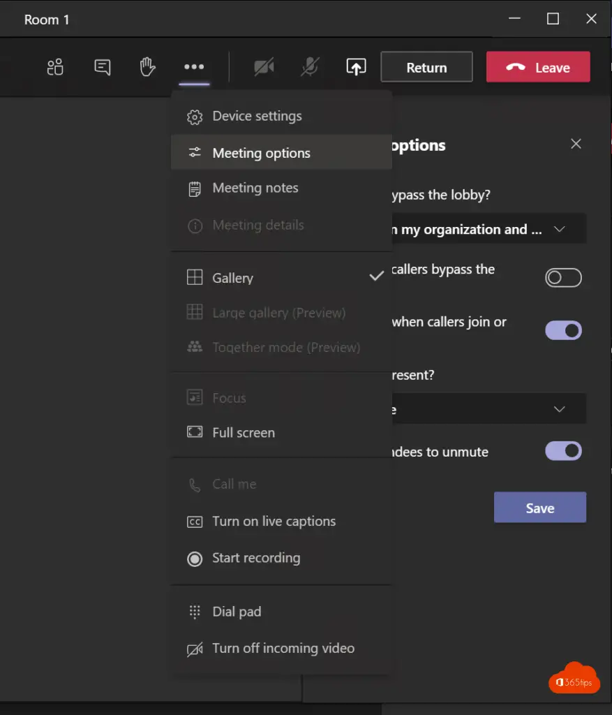 Vergadering opties – Room 1