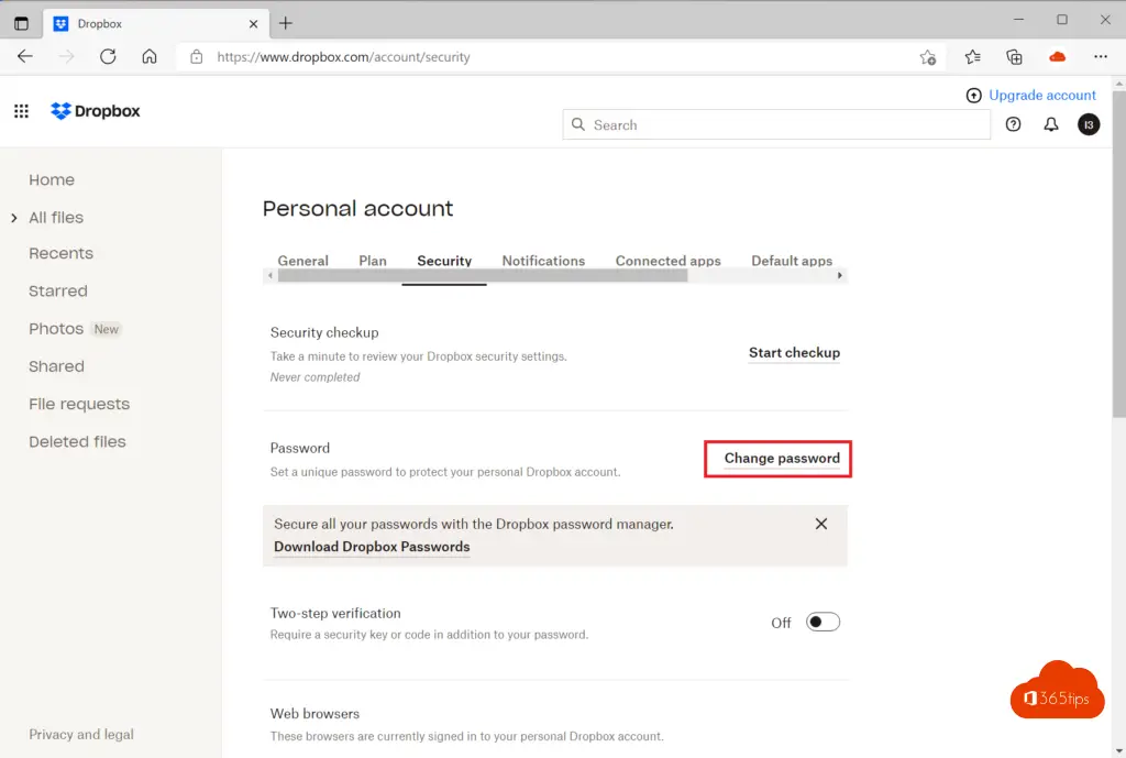 Het wachtwoord wijzigen in Dropbox