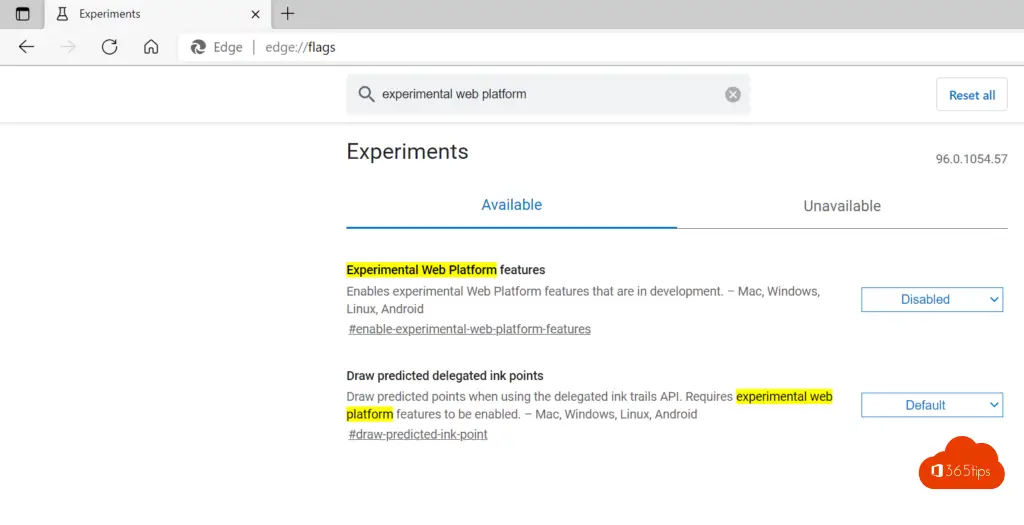 Als u alle Microsoft Edge Flags wenst te resetten kan je boveaan rechts via de URL: Edge://flags op reset klikken.