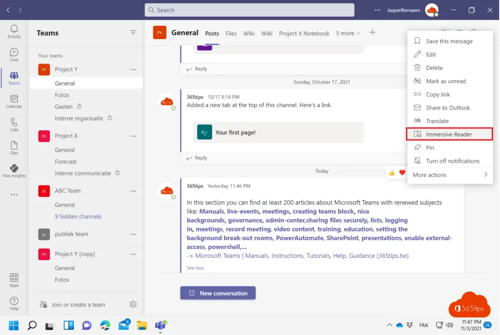 Microsoft Teams kan je helpen om in verschillende talen berichten, chats en teksten voor te lezen dankzij immersive reader.
