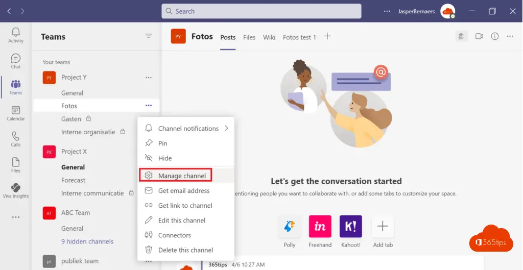 Een Microsoft Teams Channel hernoemen kan door rechts te klikken op het kanaal — “edit this channel”