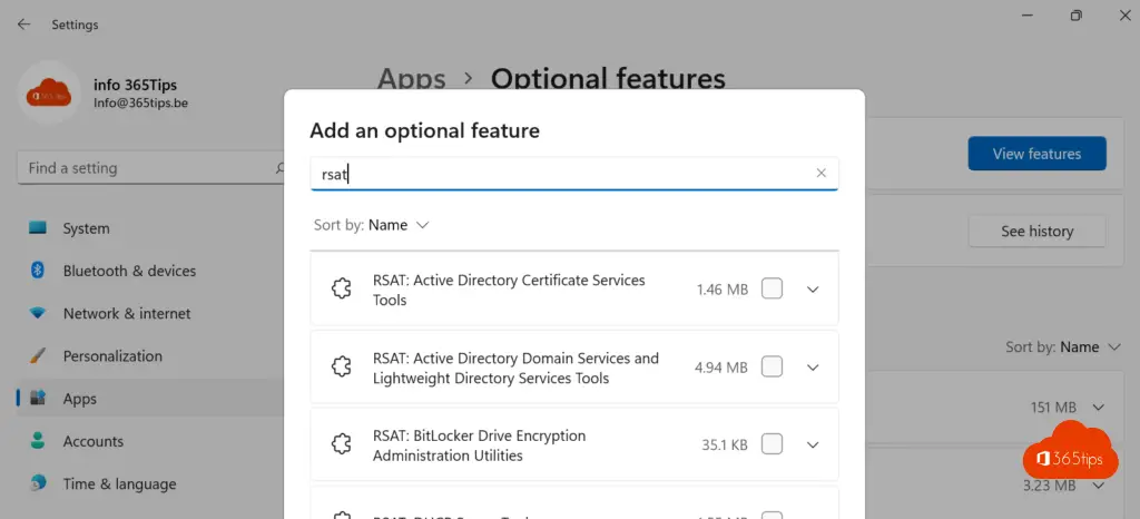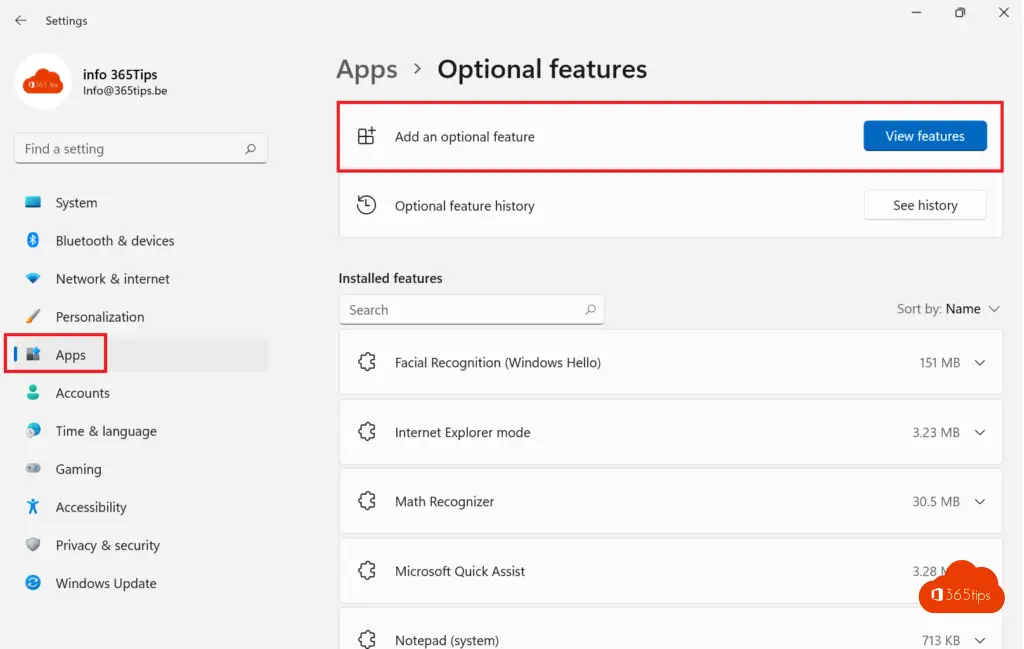 Selecteer Instellingen – Applicaties – Voeg een optionele feature toe -> Zoek features
