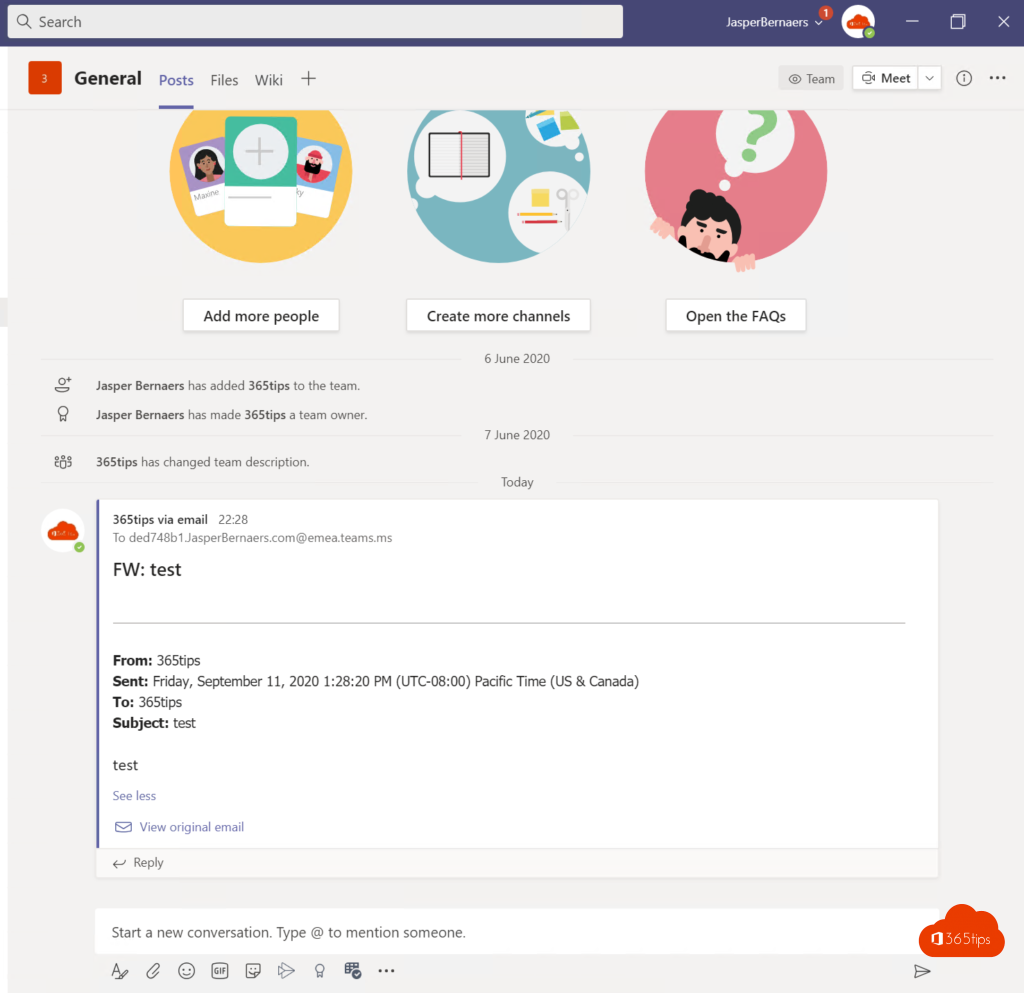 stuur dan het e-mail bericht door naar: Het adres van team kanaal.