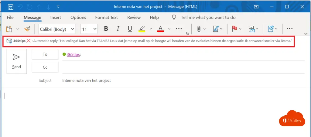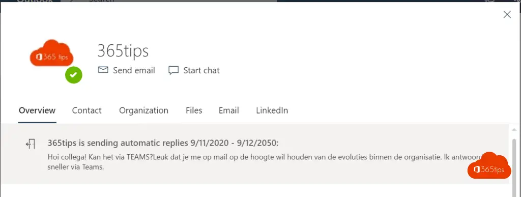 Deze tip zien je collega’s in Outlook als ze je willen mailen. (enkel intern)