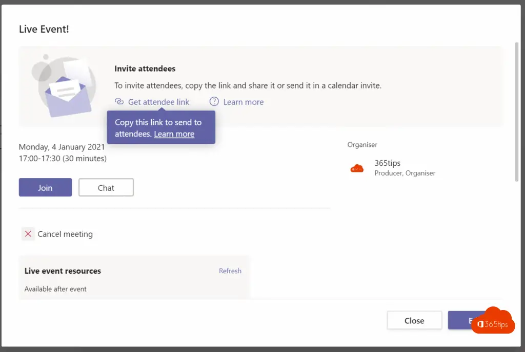 Verander de standaard policy – Who can join scheduled live events -> everyone.