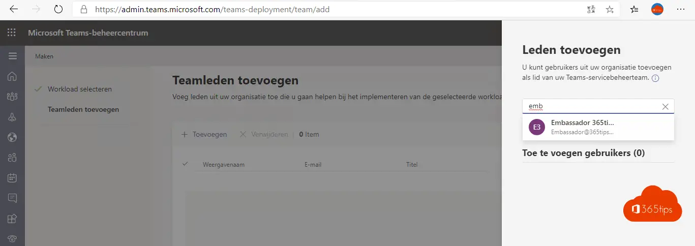 Een teams implementatie doe je niet alleen. Voeg je embassador toe en klik op maken.