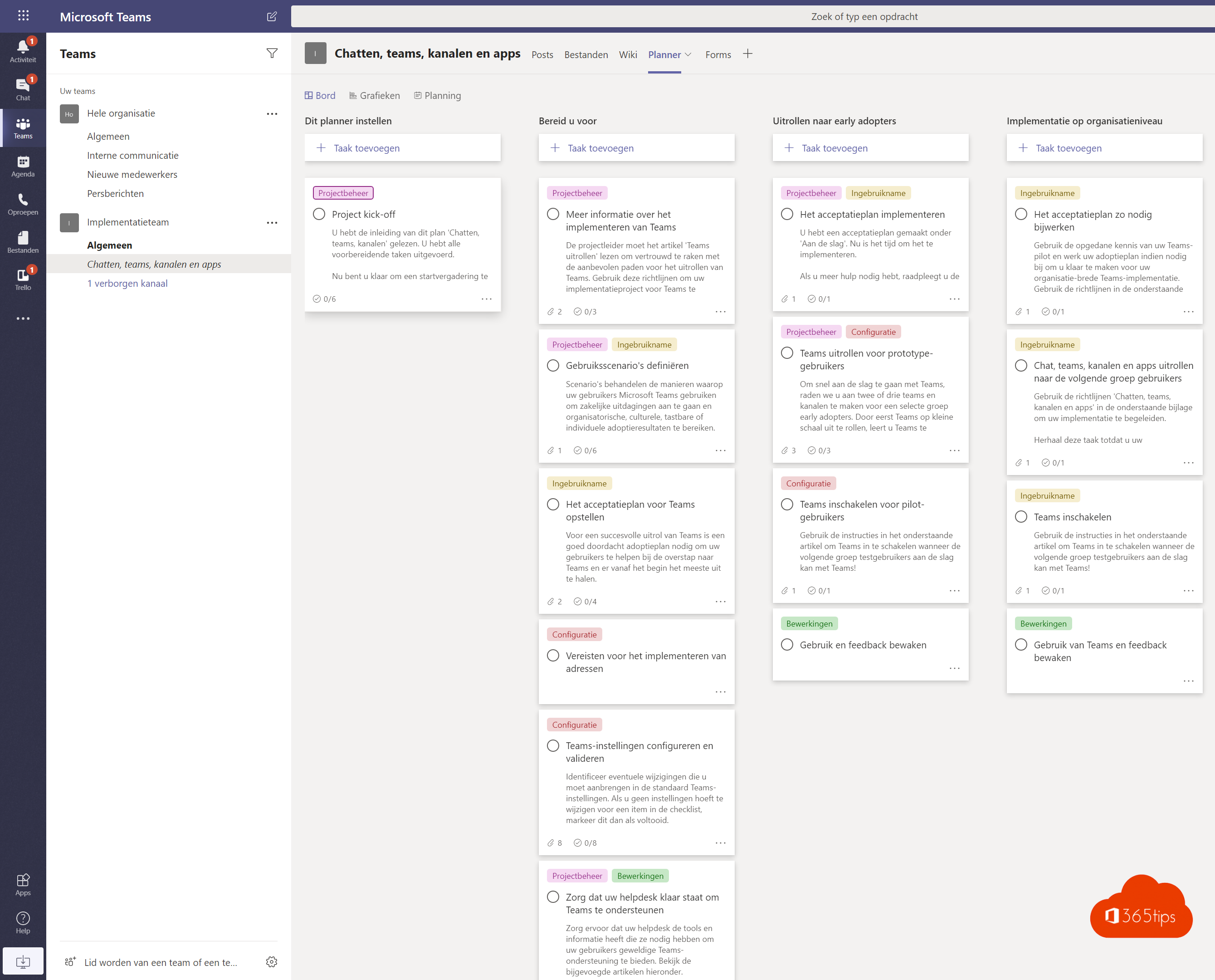 - De organisatorische gereedheid evalueren met het artikel Teams in gebruik nemen