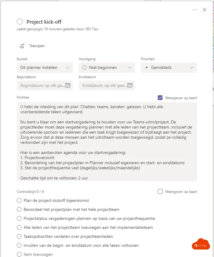 - Beoordeling van het projectplan in Planner inclusief eigenaren en start- en einddatums