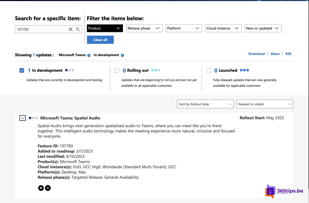 In deze Microsoft 365 roadmap kan je informatie raadplegen over Microsoft Teams maar ook over: Excel, Microsoft Edge, Forms, OneDrive, Stream, Visio, Whiteboard, etc. Bekijk zeker deze pagina: Microsoft 365 Roadmap | Microsoft 365.
