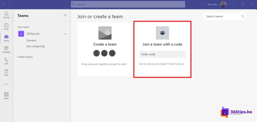 Voer de code in en je zit automatisch in het eerder aangemaakte team.