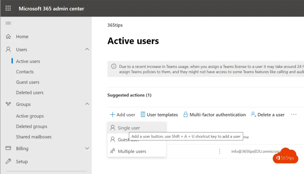 Open het Admin portal via: https://admin.microsoft.com/AdminPortal/Home#/users