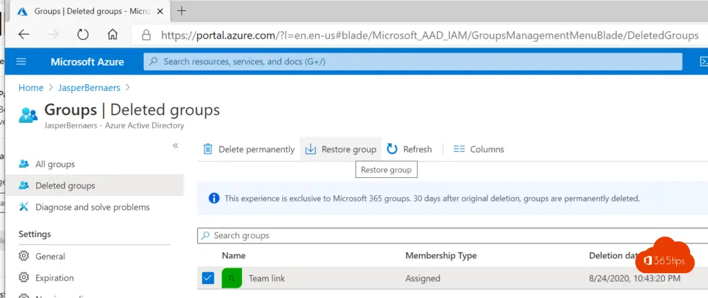 Hoi Linda! Elke Office 365 omgeving heeft een azure paneel. Enkel de beheerder kan teams herstellen. Ben je beheerder?