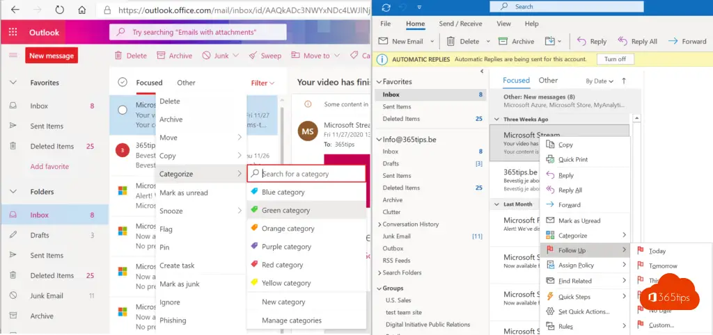 Categorieën in e-mails om taken af te handelen zijn meestal bekend zoals in deze afbeelding.