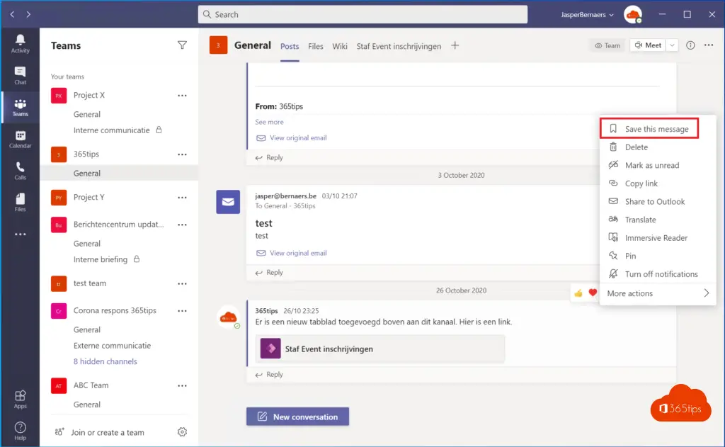 🕑 Tutorial: Hoe kan je een bericht voor later opslaan in Microsoft Teams?
