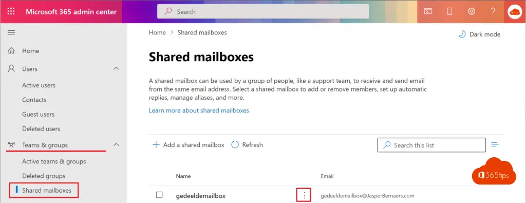 - Navigeer naar gedeelde postvakken, onder Teams & Groups.