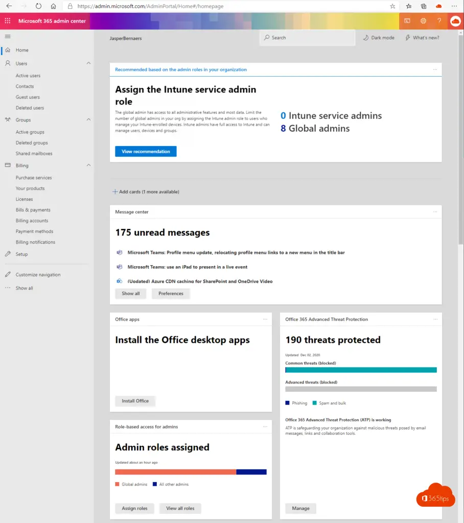 Surf naar: https://admin.microsoft.com of gebruik dit overzicht van alle administrator links.