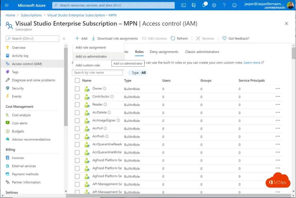 Druk op Access Control (IAM) -> add – Add co-administrator