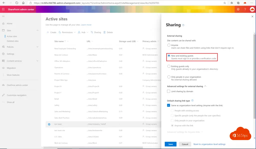 LET OP: Deze tip zorgt er voor dat externe mensen geen toegang meer hebben tot de documenten van het Team. Gasttoegang zorgt er voor dat geen toegang is tot Microsoft Teams. — met deze tip blokkeer je enkel toegang tot documenten!