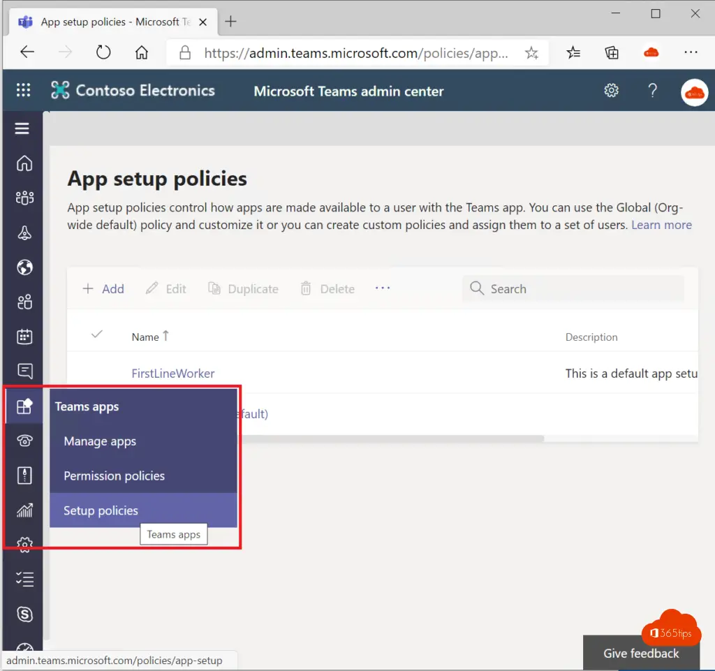 Druk op Teams Apps – Setup Policies