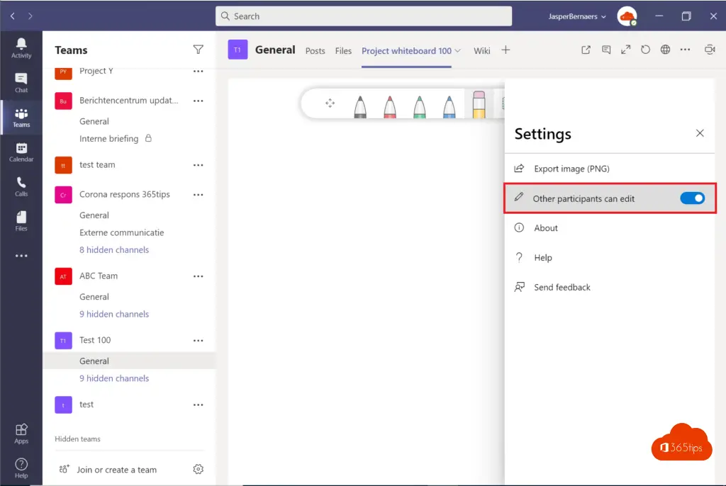 Naast deze mogelijkheid om tijdens de vergadering een whiteboard op te starten kan je ook een whiteboard toevoegen die blijft hangen in een teamskanaal. Hoe je dit doet leg ik uit in deze blog.