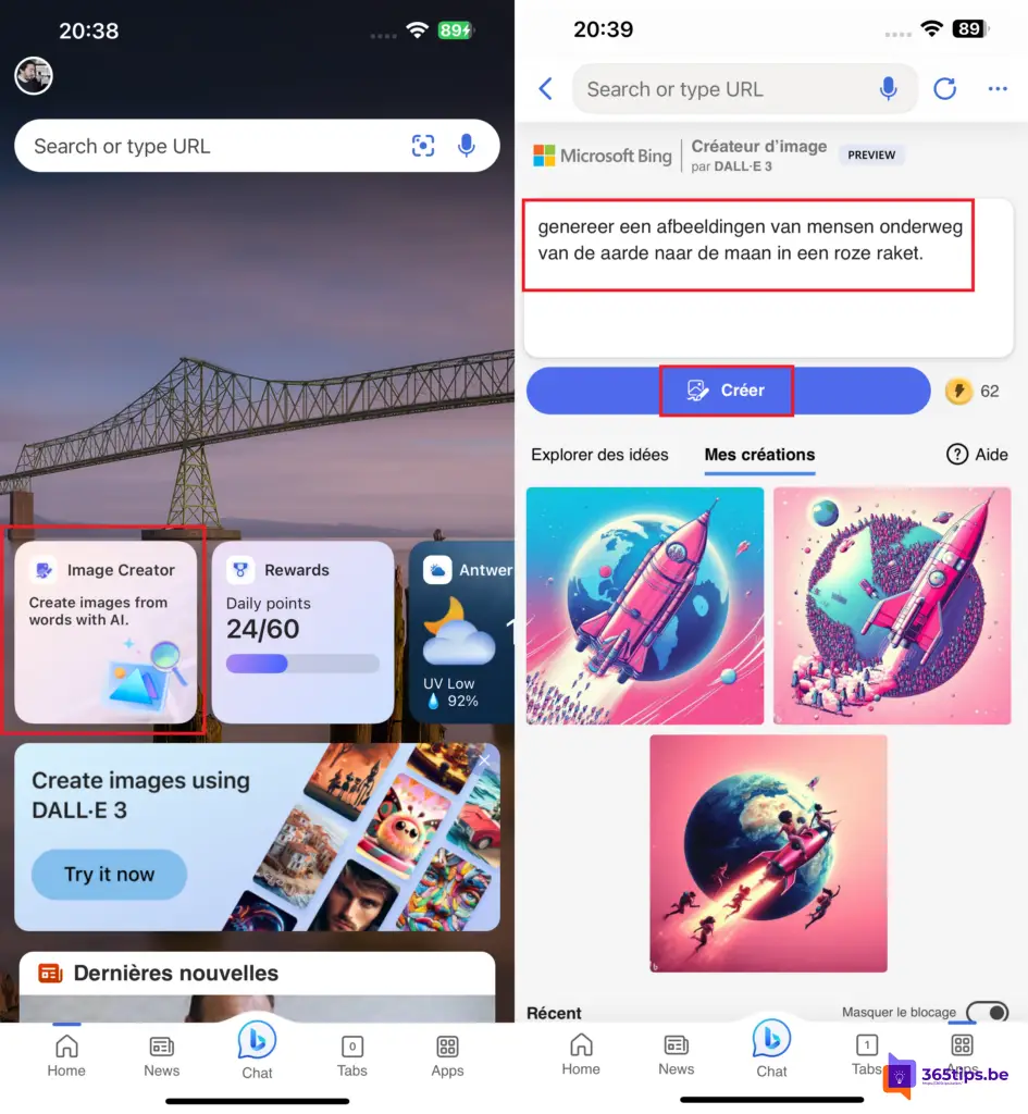 Zo gebruik je de mobiele applicatie van Bing om plaatjes te maken dankzij generatieve AI