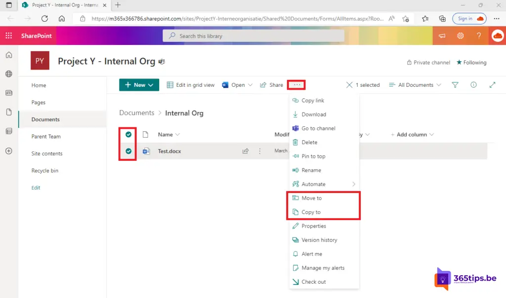 💡 Hoe bestanden of mappen verplaatsen of kopiëren in SharePoint of Microsoft Teams?